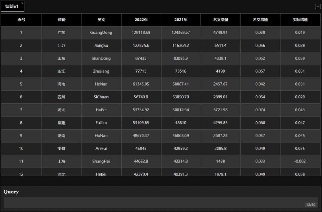 比如说,你希望在这张统计中国GDP的表格内,在所有省份前加上“中国”,把需求直接告诉AI,等待几秒钟后,酷表就帮你搞定了。