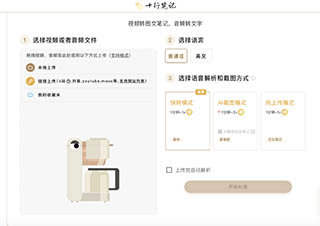 你可以直接上传本地视频、音频或者bilibili、抖音、小红书、Youtube、网易公开课、中国大学mooc的视频链接,选择生成图文的语言类型,目前只支持中文和英文两种,选择AI截图模式。