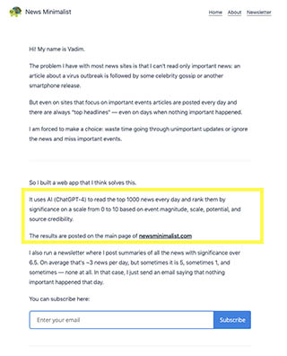 从每天成千上万条新闻中,GPT4帮你自动阅读1000篇最新的新闻报道,并从新闻事件的重要性、事件规模、事件发展潜力和信息来源可信度四个不同的维度进行评分,筛选出评分高、可读性高的内容,并做成摘要供你阅读,让每个人不用再把时间浪费在看重复的、没有意义的新闻上。